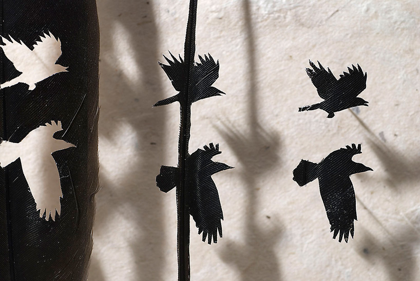 american artist chris maynard gives homage to nature through the plumage of birds with his 'featherfolio' work. by applying various techniques