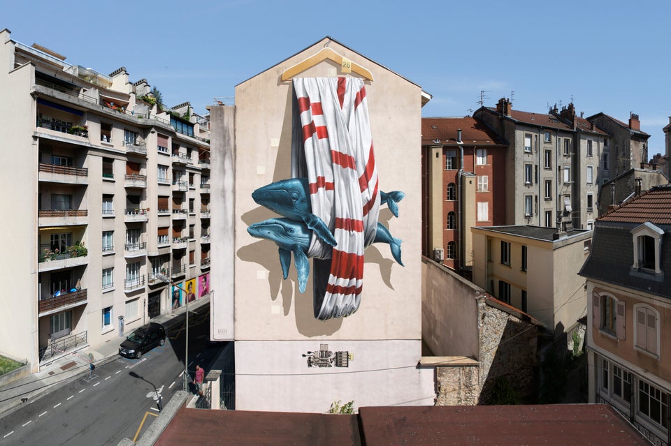Swiss street art duo Christian Rebecchi and Pablo Togni, otherwise known as NeverCrew, met in art school when they were 15 and started making work together soon after. As a team, the artists adorn the world with eye-popping and gut-wrenching images depicting the consequences of humanity’s actions on earth.